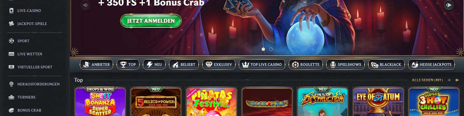 ➥ 250% bis zu 3000 € + 350 FS + Bonus Crab